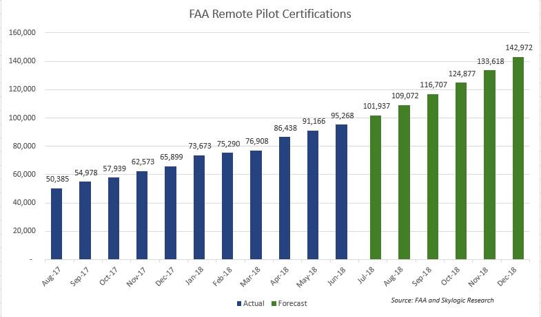 Amerika Ulusal Havacılık Kurulu (FAA) yayımladığı rapora göre temmuz 2018 itibari ile İHA pilotu sayısı 100.000 olarak açıklanmıştır. Rapora göre İHA pilotu sayısı aylık %7, yıllık ise % 90 artış göstermektedir. Aslında bu büyük artış, gelecekte İHA sistemlerinin yada drone'ların günlük hayatımızın bir parçası olacağını göstermektedir.